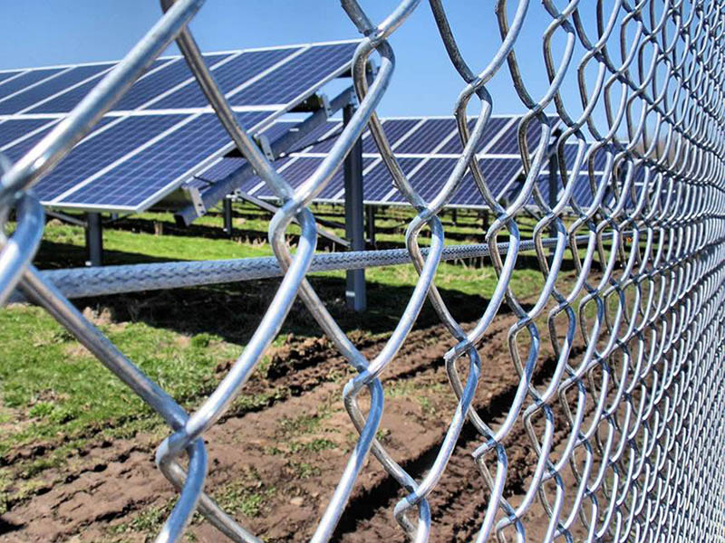 Used around solar power installations for security and wildlife protection. Corrosion-resistant and compatible with barbed wire.