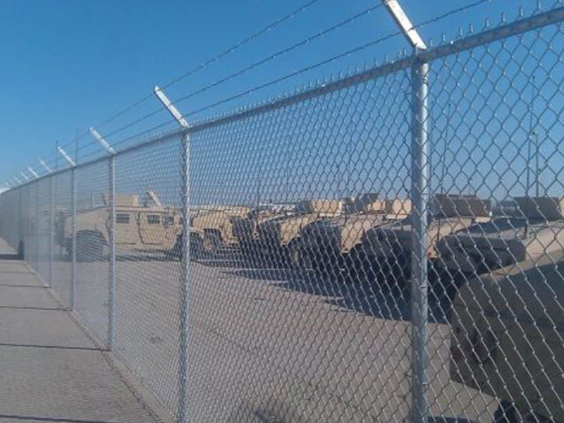 Heavy-duty fencing with optional razor wire to protect runways and restricted zones in airports.